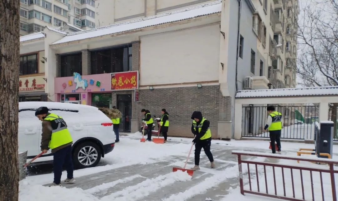 为确保车辆、居民安全出行,世纪铜城物业各小区组织工作人员,顶风冒雪,及时清扫辖区、公共区域积雪,尤其是人行便道,小区进出囗,方便了居民正常出行。