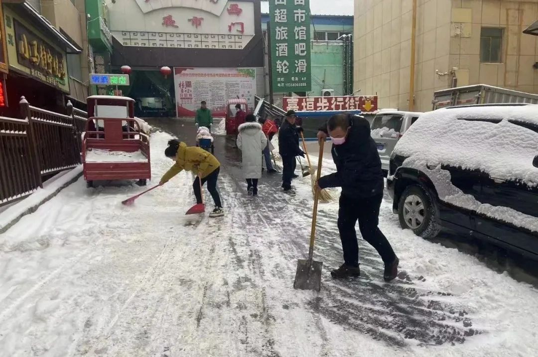 正合智诚全体员工以雪为令,闻令而动,迅速投入到清雪中,大家相互配合,清除道路安全隐患,为前来办事的群众扫出一条“平安路”,也为过往行人提供便捷。